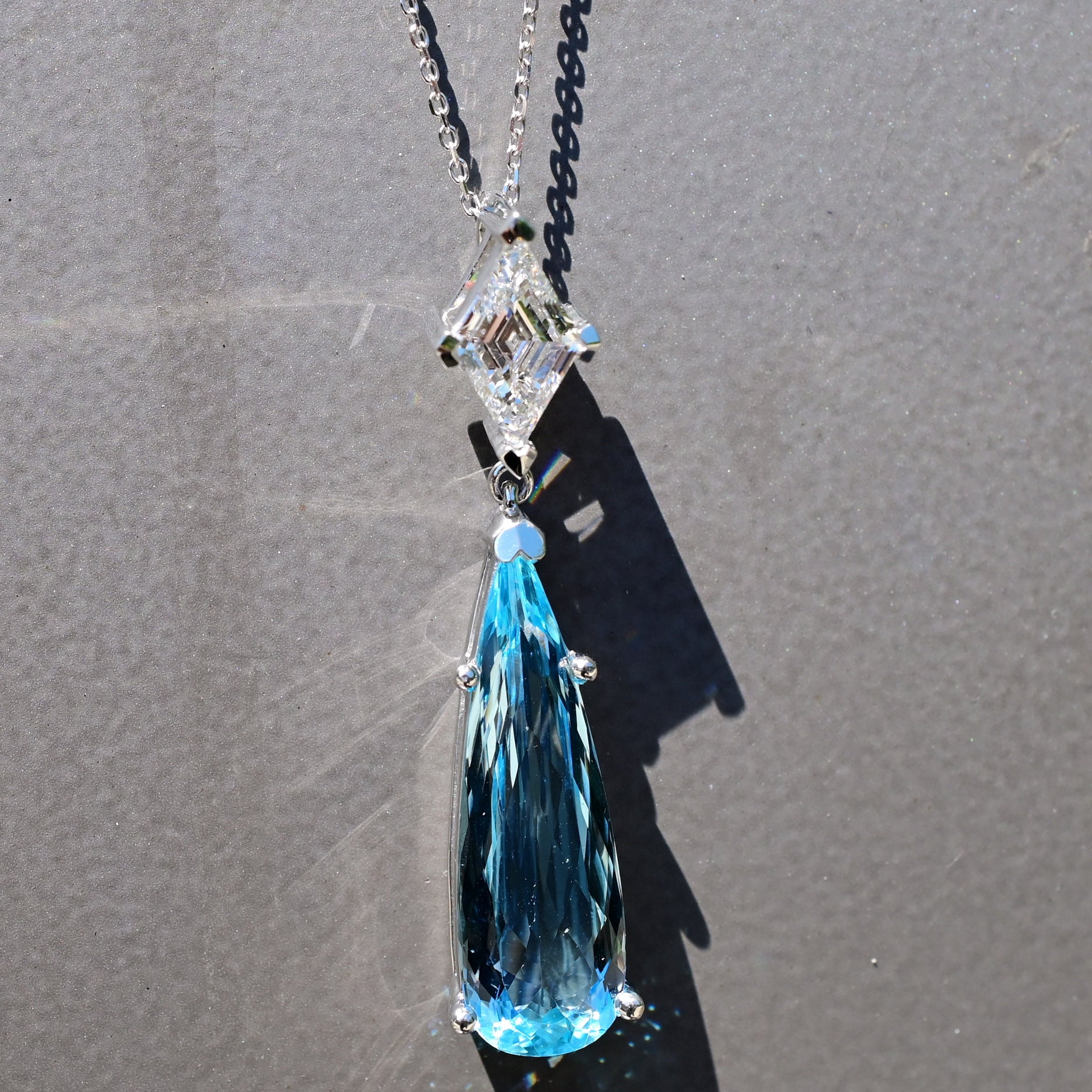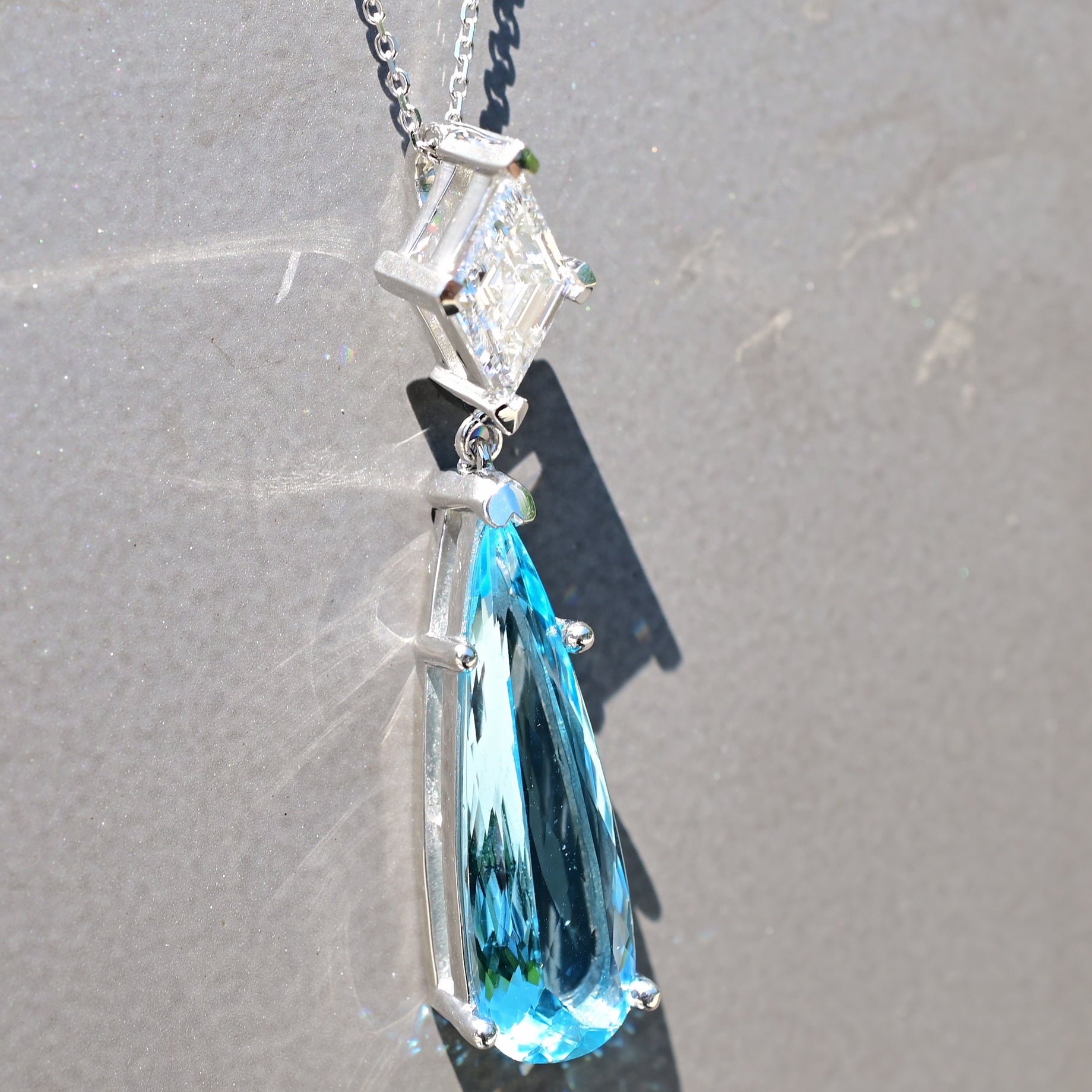 White Gold Pendant with a Princess Cut Diamond and Aquamarine