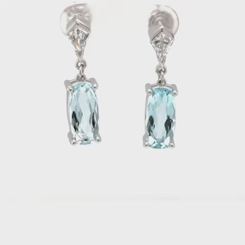 Beautifully matched aquamarine twins with Kite shape diamonds for a perfect match earrings.