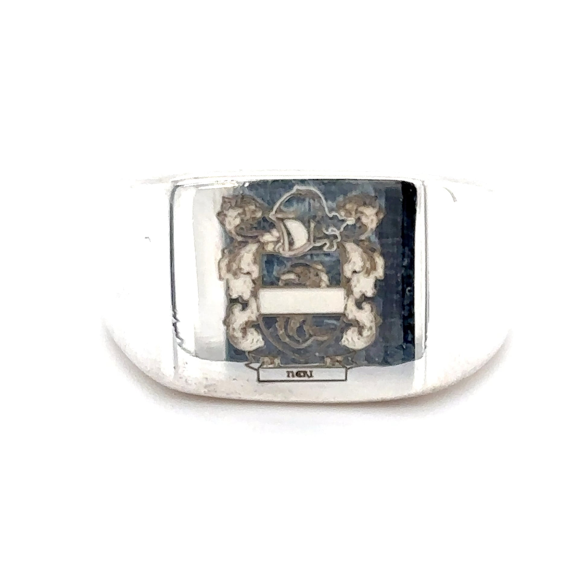 Discover the timeless elegance of this silver crest ring, featuring intricate detailing that showcases a unique emblem.