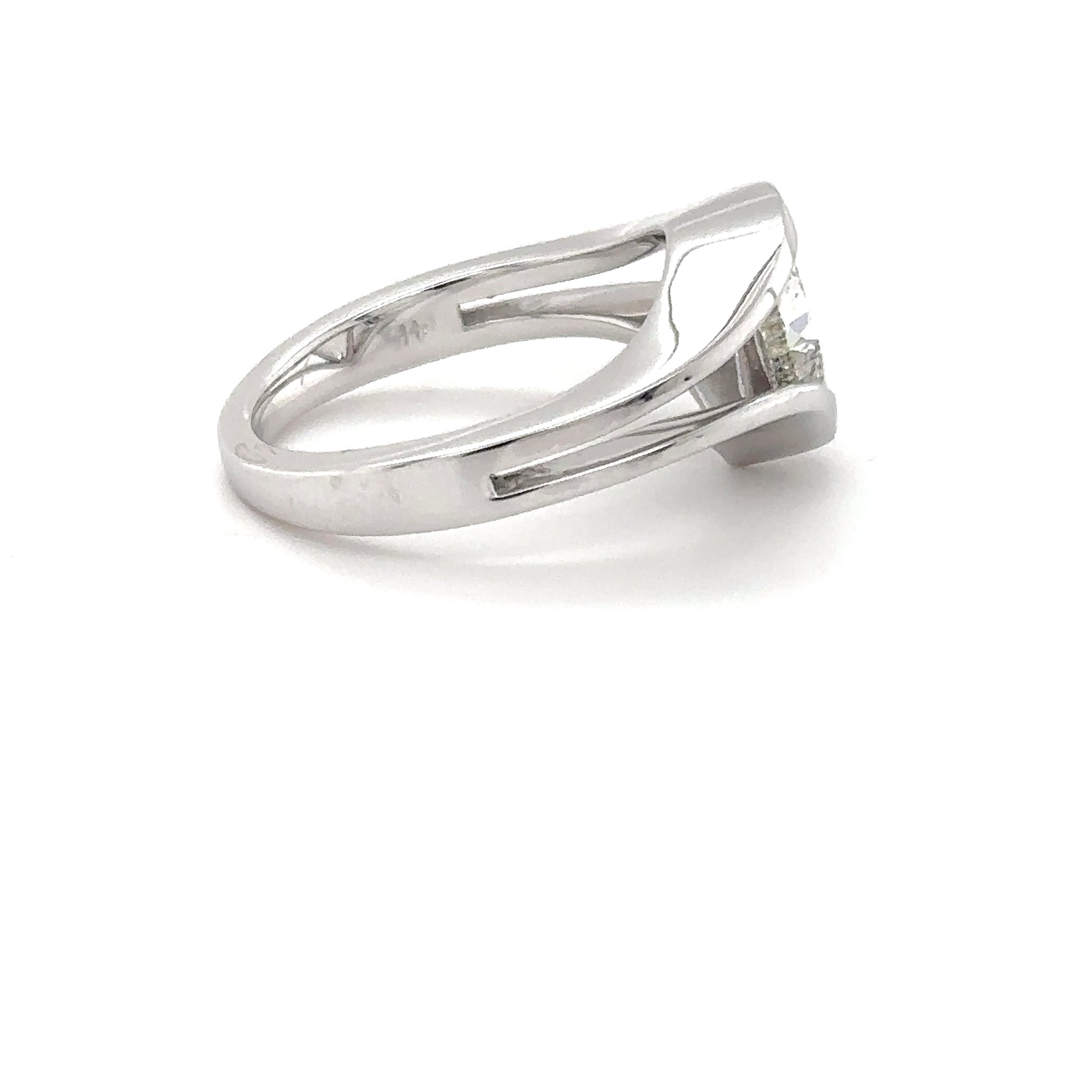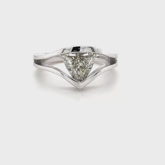 A unique triangular cut diamond set in a sleek and modern band. Its minimalist design highlights the brilliance of the diamond, making it a perfect choice for those who appreciate understated elegance.