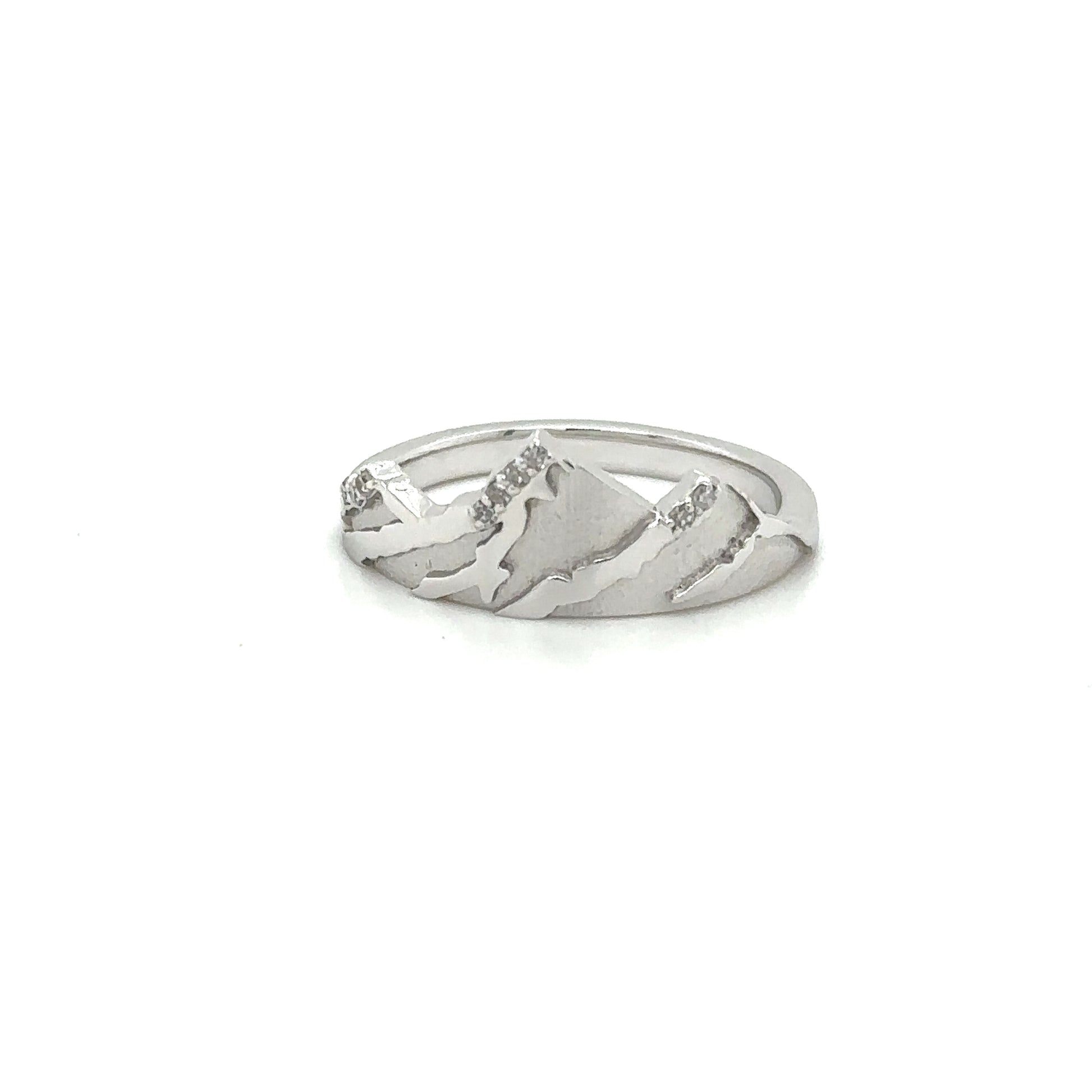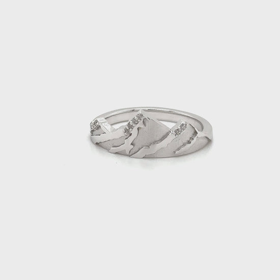Jagged snow capped peaks formed in white gold with white diamonds.
